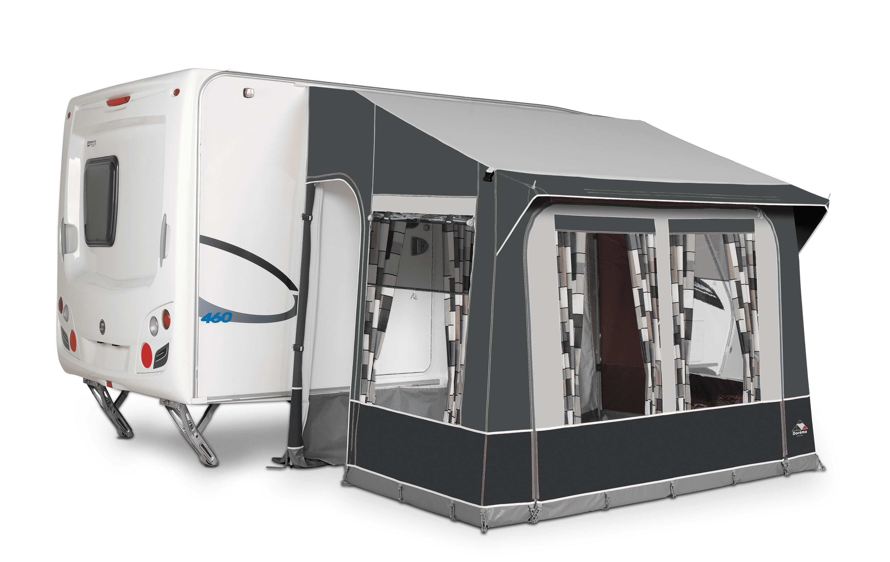De Doréma Quattro 275 is ontworpen voor de kampeerder die prijs stelt op extra ruimte en comfort. De sterke Ten Cate materialen, in combinatie met de optionele upgrade van het stalen frame naar een 28mm uitvoering en een winterpakket, maken dit model bij uitstek geschikt voor seizoengebruik en zelfs voor uw wintersportvakantie. Deze universele voortent is leverbaar in maar liefst 4 breedte- en 3 dieptematen en wordt geleverd met een vrijstaand 4-poots frame. De standaard, aan de zijwanden, aangenaaide schuimkussens zorgen voor een perfecte aansluiting aan uw caravanwand. De voorwanden zijn neerrolbaar en uitritsbaar.