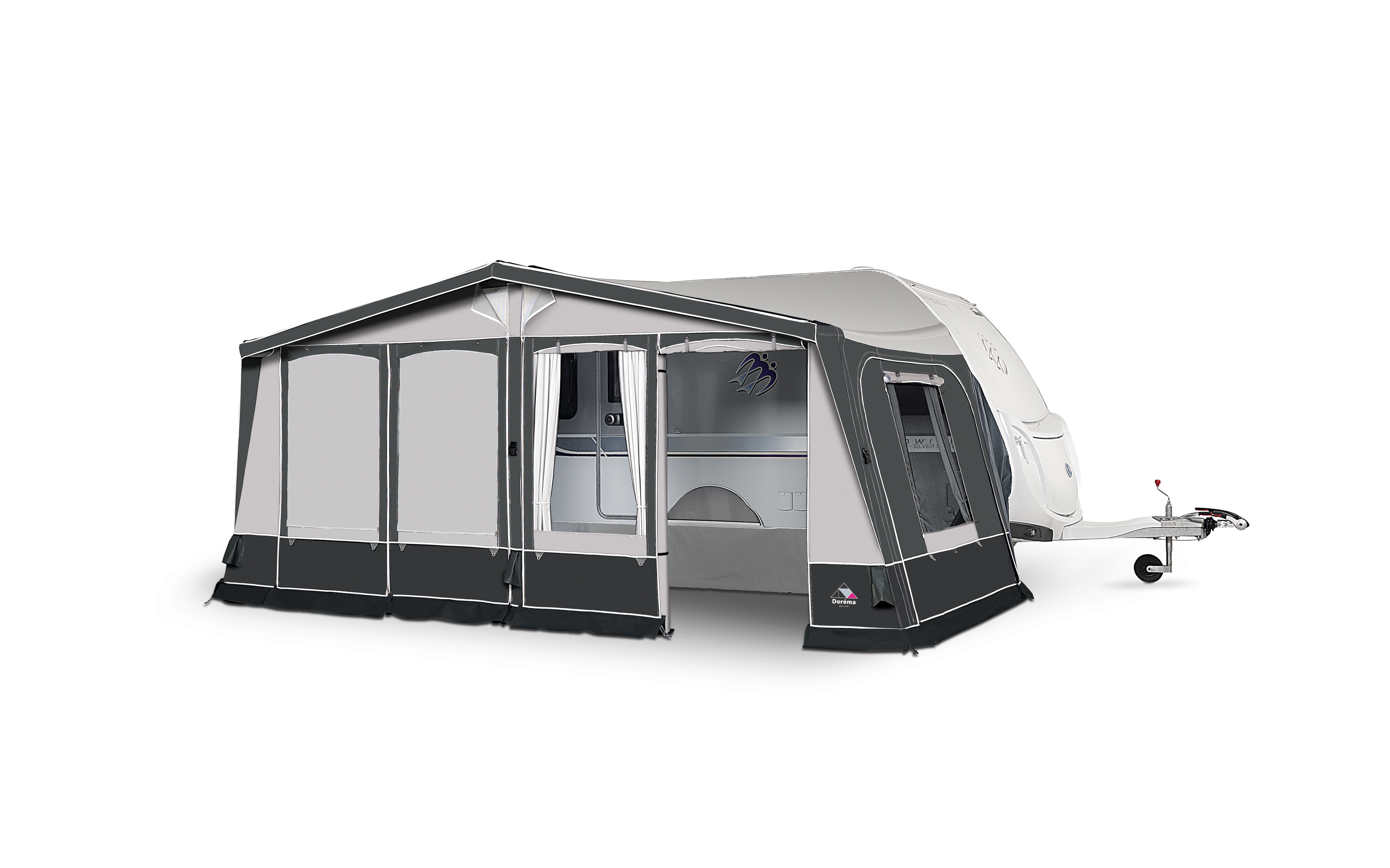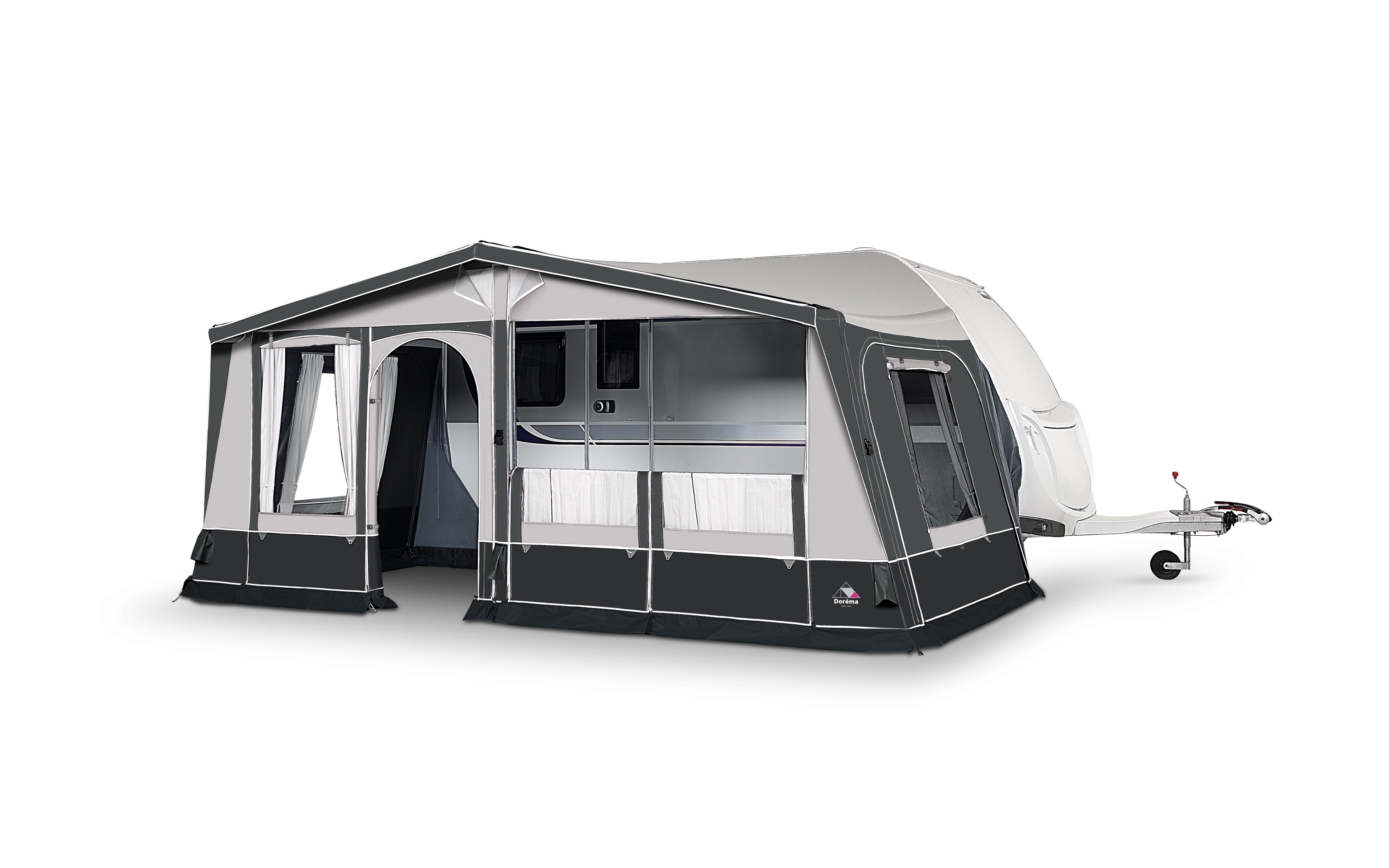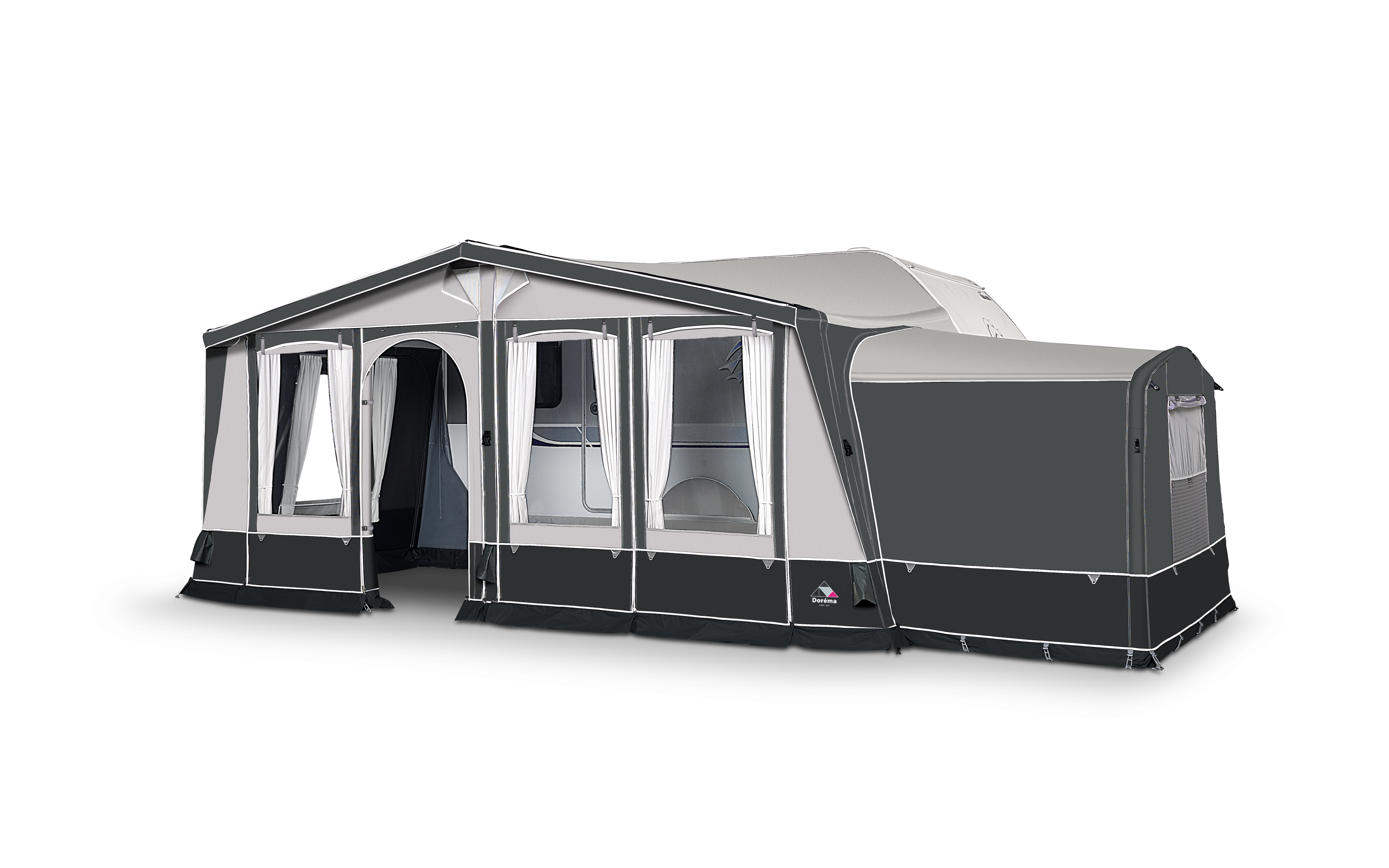 De Doréma Horizon Air Deluxe is de allernieuwste volledig opblaasbare caravanvoortent. Deze voortent is geheel gemaakt van een extra zware kwaliteit Ten Cate All Season tentdoek. Hierdoor is de Horizon Air All Season ook prima geschikt om een langere tijd gedurende het jaar te gebruiken. Het aan de binnenzijde geprinte dak en de DormaTex wanden geven de voortent een zeer exclusieve look. Dankzij het Easy Air Frame (EAF) wordt de voortent in enkele minuten opgebouwd. De voortent is standaard voorzien van een dubbele slikrand, onderling uitwisselbare voorpanelen en afgedekte ritsen. Het geheel maakt dit tot een voortent van wereldklasse.