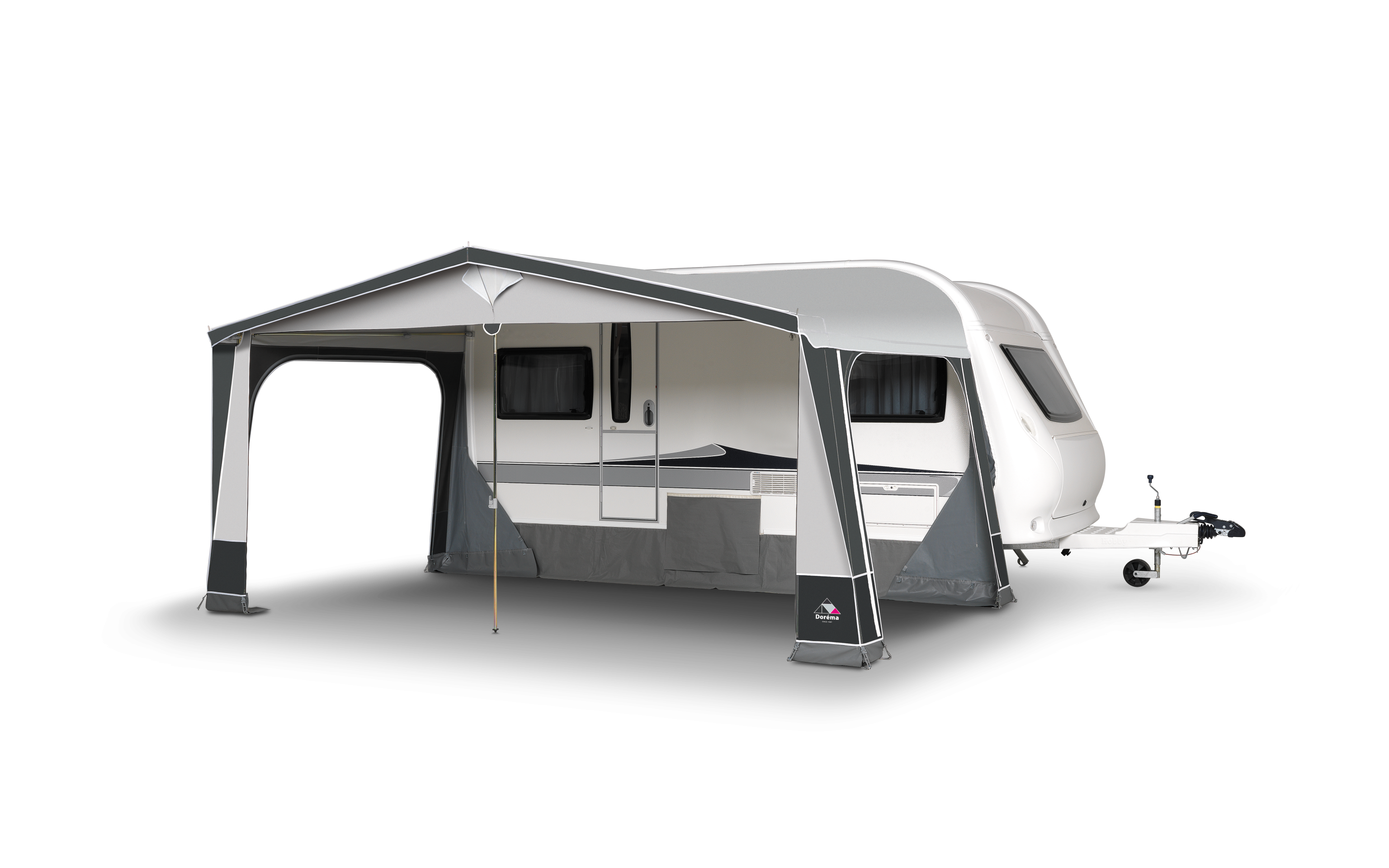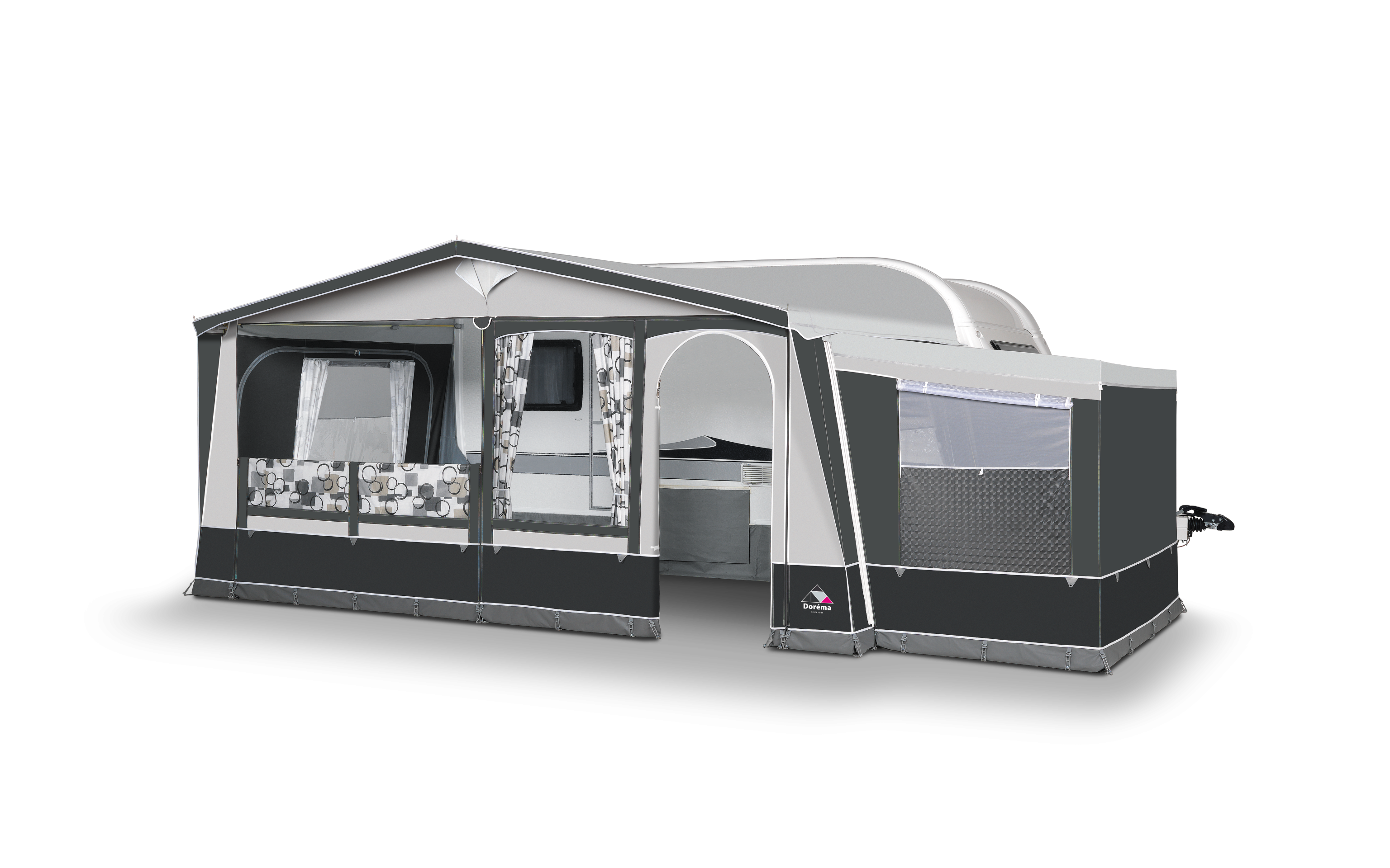 De Doréma Ibiza 240 is modern en zeer functioneel vormgegeven en is leverbaar in een diepte van 240 cm. Zowel het dak als de zijwanden zijn volledig uitgevoerd uit PVC-materiaal en daarmee ideaal voor seizoengebruik. De uitwisselbare voorpanelen maken het mogelijk de deur zowel in het midden als rechts te plaatsen. De Ibiza is verkrijgbaar in de modieuze kleurencombinatie antraciet/grijs.