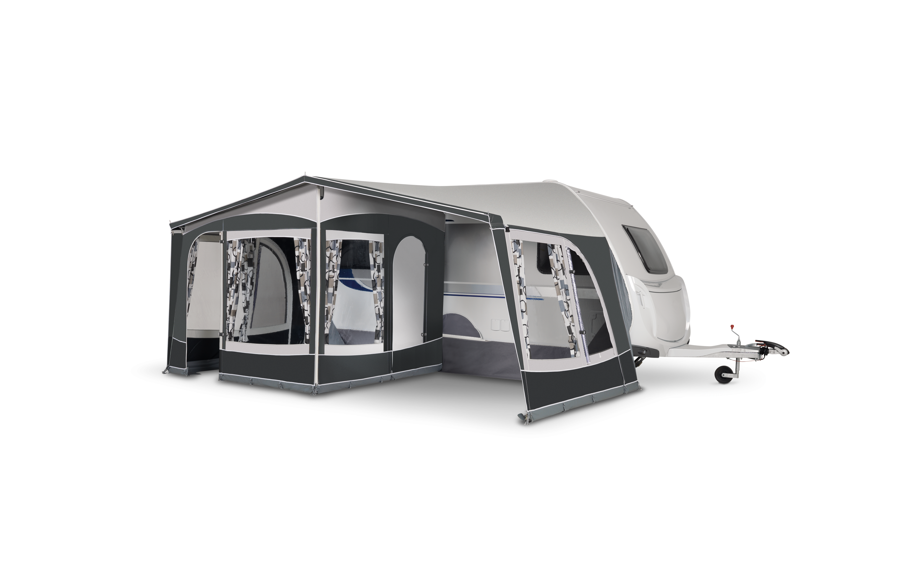 De Multi Nova Excellent is een combinatie van luifel en voortent. Deze multifunctionele luifel/voortent is gemaakt van topkwaliteit Ten Cate All Season tentdoek. Alle wanden zijn naar wens in- en uitritsbaar en de beide zijwanden zijn voorzien van een fraai gestileerd halfrond afsluitbaar gaasvenster. De voorwand heeft twee deuren. Door één deur gesloten te laten, afhankelijk van de plaats van de deur van de caravan, creëert u aan één kant een ruime zithoek. Deze schitterende luifel/voortent wordt standaard geleverd met het unieke, snel opzetbare, aluminium EasyGrip Quick System frame of tegen meerprijs met het nieuwe supersterke lichtgewicht Fibre Tech glasfiber frame.